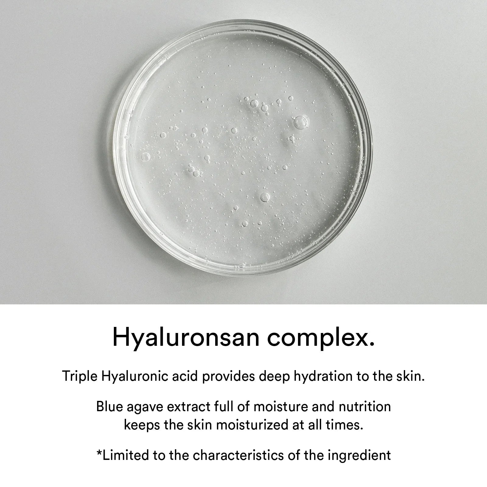Intensyviai drėkinanti ir raminanti veido kaukė su unikaliu mikropluošto lakštu, kuris glaudžiai priglunda prie odos ir leidžia aktyviosioms medžiagoms prasiskverbti giliau. Formulėje esantys 8 tipų hialurono rūgšties junginiai, sedumo ekstraktas ir TECA kompleksas (Centella Asiatica) efektyviai mažina odos dehidrataciją, stiprina odos barjerą bei greitai ramina sudirgimą, ypač dėl karščio ar aplinkos veiksnių. Kaukė suteikia vėsinantį efektą, mažina odos tempimo jausmą ir pagerina makiažo sukibimą su oda.